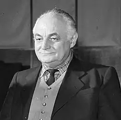 László Földényi (1895–1960) was a Hungarian stage and film actor.[1] [2] He appeared at a variety of different theatres including the Comedy Theatre in Budapest. He played supporting roles, sometimes as villains, in Hungarian cinema from the pre-war Horthy era to the Communist period.