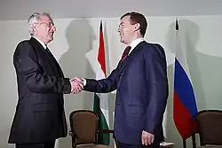 Sólyom with Russian President Dmitry Medvedev on 28 June 2008