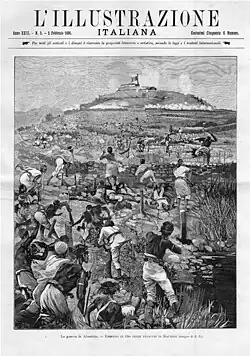 Eduardo Ximenes (1896) First Italo-Ethiopian War: depiction of an attack on Mekelle, engraving.