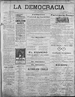 La Democracia, founded on 1 July 1890, was a news daily published by Luis Muñoz Rivera in Ponce, Puerto Rico. It crusaded for Puerto Rican self-government.[5] At a publication length of 58 years, it was the longest continuously-running Puerto Rican Spanish newspaper of its time, and one of the longest continuously running Puerto Rican newspapers of all time.[6]