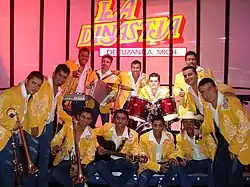 La Dinastía de Tuzantla, Michoacán, or simply La Dinastía de Tuzantla, is a regional Mexican band from Tuzantla, Michoacán, Mexico, that was founded in 1987. It specializes in the Tierra Caliente genre, and was created by the Toledo family, who are also members of the group.[1] Their 2005 live production, En Vivo, landed the number seven spot on Billboard's Regional Mexican charts; it eventually peaked at number seven on the Hot Latin Albums chart.[2]