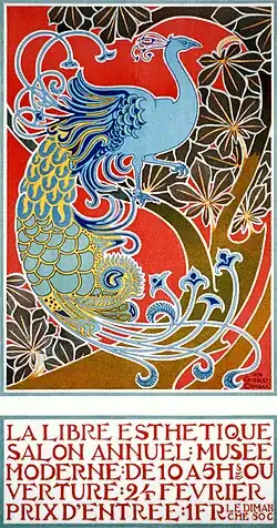 La Libre Esthétique (French; "The Free Aesthetics") was an artistic society founded in 1893 in Brussels, Belgium to continue the efforts of the artists' group Les XX dissolved the same year. To reduce conflicts between artists invited or excluded, artists were no longer admitted to the society, thus all exhibitors were now invited.