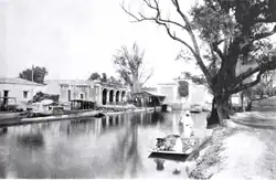 The first La Viga Market was established near the La Viga Canal, which was named after a 19th-century ranch.[2] In the 19th century, this area was filled with drying land, with artificial islands called “chinampas” and canals, including La Viga, which linked Chalco and Xochimilco, which still had their lakes, to the lake port of San Lázaro, near the historic center of Mexico City. The canal and others in the area were drained and filled in very early in the 20th century, with the La Viga Canal becoming the Calzada de La Viga road. Around this new road, industries and neighborhoods emerged.[2][3] The old La Viga Market still exists and still sells mostly wholesale, but its customers are more local, such as retailers and restaurants in Mexico City.[4]