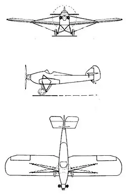 The Lachassagne AL 3 was the first French monoplane to have wings with in-flight adjustable camber. The idea was to provide a high camber, high lift airfoil at low speed and a lower camber, lower drag section at high speeds, increasing the speed range of the aircraft. The AL 3 first flew late in 1926 and only survived a short period of testing before its old and fragile undercarriage collapsed whilst landing, badly damaging it. Nonetheless, enough had been learned to encourage Lachassagne to build a new, improved version incorporating, amongst other things, a stronger undercarriage and a more modern engine.[1]