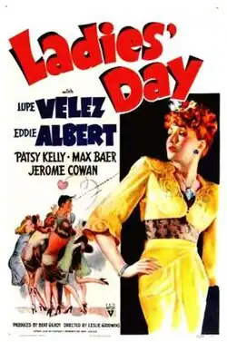 Ladies' Day is a 1943 American comedy film directed by Leslie Goodwins and written by Charles E. Roberts and Dane Lussier, adapted from the play of the same name. The film stars Lupe Vélez, Eddie Albert, Patsy Kelly, Max Baer and Jerome Cowan. It was released on April 9, 1943, by RKO Pictures.[1][2][3]
