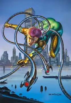 In The Amazing Spider-Man (vol. 5), Lady Octopus joins the Sinister Syndicate.[6] She appears with the group in the subsequent storylines "Sinister War" and "Gang War".[7][8] In the miniseries Spider-Society, Lady Octopus joins the Sinister Squadron in attacking the eponymous Spider-Society in an attempt to prevent it from forming.[9]