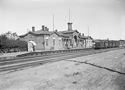 The Riihimäki–Saint Petersburg railway reached Lahti in August 1869, and the first train arrived there just three months later, on 1 November. Around the same time, a siding to the shore of the Vesijärvi was built and the Vesijärvi railway station established, marking the beginning of the development of Lahti's status as a crossing between the railway and the waterborne traffic on the Päijänne.[4]