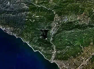 Lake Casitas is a reservoir in Ventura County, California, built by the United States Bureau of Reclamation and completed in 1959.[2] The project provides drinking water and water for irrigation.[3][4] A secondary benefit is flood control. It was the venue for canoeing and rowing at the 1984 Summer Olympics.