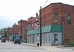 Two notable industrial/commercial buildings are located on Third Street, both of which were built by brewer Joseph Bosch.[2] The first is the First National Bank (1888) at 346 Third Street.[2] The bank is a two-story rough sandstone structure with arched windows. The second is the Bosch Bottling Works (1896) at 347 Third.[2] The building is a two-story rough sandstone structure with arched windows and double garage doors at street level.