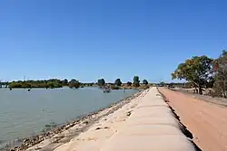 The lake's capacity was increased in the 1920s when an embankment was constructed and regulators were installed to control the release of water.[1] It provides a storage of water to manage the regulated release of agreed minimum flows down the Murray into South Australia. Even though Lake Victoria is in New South Wales, it is operated by SA Water, the South Australian water authority, on behalf of River Murray Water, a division of the Murray-Darling Basin Commission.[2]