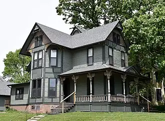 The Lampson P. Sherman House is a historic building located in Des Moines, Iowa, United States. This 2½-story frame dwelling features crossed gables that create a cross shape, shingles in the gable ends, porch and gable end brackets, and turned porch columns. The property on which it stands is one of ten plats that were owned by Drake University. The house's significance is attributed to the effect of the University's innovative financing techniques upon the settlement of the area around the campus.[2] Hoyt Sherman bought the property from the University Land Company in 1885. The house was built in 1888 and Sherman sold it to his brother Lampson, who was a student at Drake, two years later. The house remained in the Sherman family until 1904. It was listed on the National Register of Historic Places in 1988.[1]