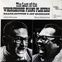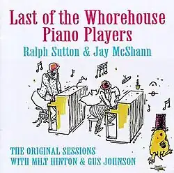 Last of the Whorehouse Piano Players, subtitled The Original Sessions is an album by pianists Ralph Sutton and Jay McShann, recorded in 1979 and originally released by the Chaz Jazz label as two LPs (subtitled Two Pianos Vol. I & II) before being reissued with two additional unreleased tracks by the Chiaroscuro label in 1992.[1][2] The 1992 CD reissue omitted two tracks from Two Pianos Vol. II, "I'll Catch The Sun" which was a solo feature for Jay McShann and "Ain't Misbehavin'" which Ralph Sutton played solo.[3] Another CD of 1989 recordings by the same group with the same title was released by Chiaroscuro on CD as Last of the Whorehouse Piano Players.