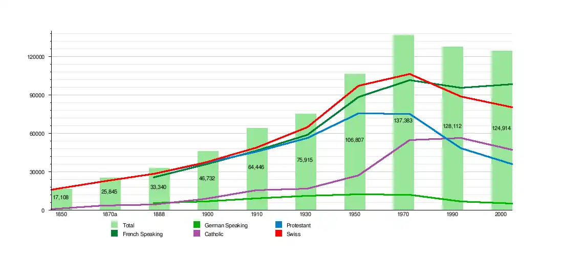 51. ^ "Population totale selon l'origine, 1979–2013". Scris.vd.ch (Statistics) (in French). Contrôle des Habitants de la Ville de Lausanne / StatVD, canton de Vaud. 23 January 2014. Archived from the original (XLS) on 11 August 2014. Retrieved 8 August 2014.