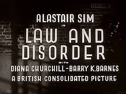 Law and Disorder is a 1940 British second feature ('B')[1] comedy crime film directed by David MacDonald and starring Alastair Sim, Diana Churchill and Barry K. Barnes.[2] It was written by Roger MacDougall.
