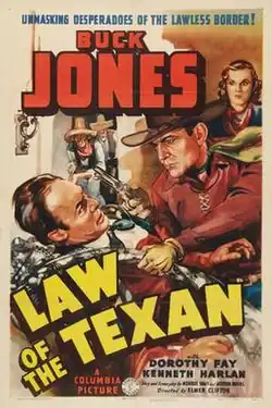 Law of the Texan is a 1938 American Western film directed by Elmer Clifton and written by Monroe Shaff and Arthur Hoerl. The film stars Buck Jones, Dorothy Fay, Kenneth Harlan, Don Douglas, Matty Kemp and Joe Whitehead. The film was released on October 24, 1938, by Columbia Pictures.[1][2][3]