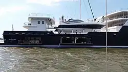 The boat also carries two additional yachts, a 22 m (73 ft) sailing yacht, Bellatrix, and a 21 m (68 ft) motor yacht, Sirius A.[6] She also features two Buzzi sports boats and a landing craft to carry a 4x4 Land Rover.[6] She also has 2 helipads on the superstructure and aft deck.[6][7]