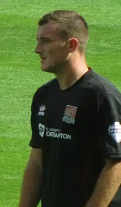 He joined Northampton Town until the end of the 2012–13 season in February 2013.[42] Manager Aidy Boothroyd signed him to provide competition in the "Cobblers" defence, particularly to left-back Joe Widdowson.[42] On 20 April, he scored an own goal at Vale Park which effectively promoted his former club, Port Vale, back into League One.[43] He was allowed to participate in the play-offs, despite being subject to a curfew order.[44] He played 55 minutes of the play-off final defeat to Bradford City.[45] He signed a new two-year contract in May 2013.[46]