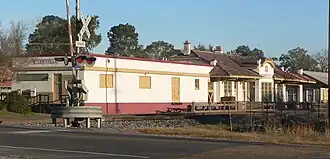 The Kansas City Southern Depot, now the Museum of West Louisiana, is a former railway station in Leesville, Louisiana. It was built by the Kansas City Southern Railway in 1916.[2] It served as a combination of passenger station, freight station, and crew change point.[3] The station was a busy shipping point during the Vernon Parish lumber boom in the early part of the 1900s. A local KCS train served the station into the 1960s.[4]