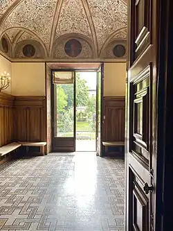 In 1920 the Italian architect and politician Luca Beltrami, relying on historical documents, was able to describe the likely position of the original vineyard, which ran probably parallel to the current Via De Grassi (De Grassi Street).[4] He photographed the vineyard that was then on the same spot when cultivations were beginning to be eradicated; at that time a resolution passed to subdivide the territory in lots to build new constructions.[5]