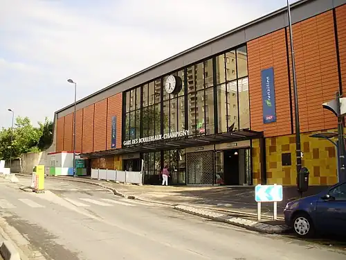 Les Boullereaux-Champigny is a French railway station in Champigny-sur-Marne, Val-de-Marne department, at kilometric point 18.473 of the Paris-Est–Mulhouse-Ville railway.