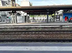 Les Vallées station (French: Gare des Vallées) is a French Railway station located on the Place de la Gare-des-Vallées in the commune of La Garenne-Colombes, Hauts-de-Seine department in the Île-de-France region. Due to the surrounding density of the stations neighbourhood, it also serves the nearby communes of Bois-Colombes and Colombes. Established at an elevation of 39 meters, the station is located at kilometric point (KP) 6.973 on the Paris-Saint-Lazare—Saint-Germain-en-Laye railway, between the stations of Bécon-les-Bruyères and La Garenne-Colombes.