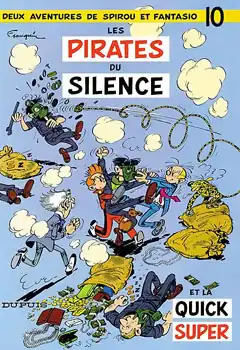 Les pirates du silence, written and drawn by Franquin, is the tenth album of the Spirou et Fantasio series. The title story, and another, La Quick Super, were serialised in Spirou magazine before both were published in one hardcover album in 1958.