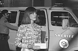 Van Houten was arrested and charged in relation to the 1969 murders of Leno and Rosemary LaBianca. Van Houten was convicted and sentenced to death, but a 1972 California Supreme Court ruling found the death penalty unconstitutional, resulting in her sentence being commuted to life in prison. Her conviction was overturned in a 1976 appellate court decision that granted her a retrial. Her second trial ended with a deadlocked jury and a mistrial. At her third trial in 1978, she was convicted of two counts of murder and one count of conspiracy and sentenced to seven years to life in prison.[2] After spending 53 years in prison that included two dozen parole hearings and parole rejections by two California governors, Van Houten was paroled in 2023.[4]