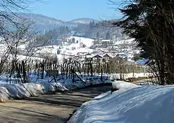 The local church is built in the Horjul side of the settlement and is dedicated to the Assumption of Mary. It belongs to the Parish of Vrhnika[4] and stands below Ferjan Hill (Slovene: Ferjanov grič). It was first mentioned in written sources in 1526. The keystone over the entryway bears the year 1542 and the interior furnishings date from the 18th century.[5]