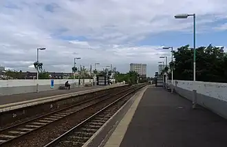 Leytonstone High Road is a railway station in Leytonstone in the London Borough of Waltham Forest, on the Gospel Oak to Barking line (currently branded as the Suffragette line of the London Overground), 9 miles 76 chains (16.0 km) down the line from Gospel Oak and situated between Leyton Midland Road and Wanstead Park. It has two platforms that are elevated approximately 20 feet (6 m) above ground level, each of which contains a metal shelter, covered but not completely enclosed. Ticket machines and Oyster validators (for touching in and out) are installed under the arch at the foot of the stairs.