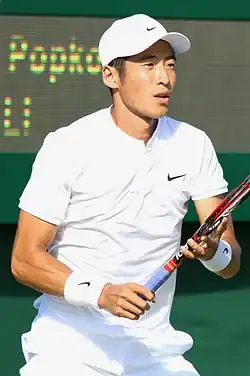 Li Zhe (Chinese: 李喆; pinyin: Lǐ Zhé; Mandarin pronunciation: [lì ʈʂɤ̌];[1] born September 20, 1986) is a Chinese tennis player who plays mainly on the ATP Challenger and ITF Futures Tours. On 11 November 2019, he reached his highest ATP singles ranking of world No. 193. His highest doubles ranking of No. 136 was achieved on 28 February 2011.