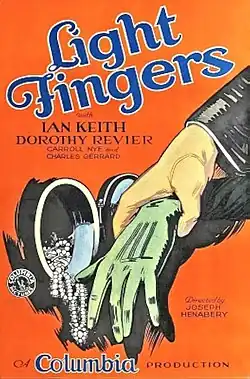 Light Fingers is a 1929 American sound all-talking pre-Code drama film directed by Joseph Henabery.[1] The sound was recorded via the Western Electric sound-on-film process. The film was produced by Harry Cohn for Columbia Pictures.[1]