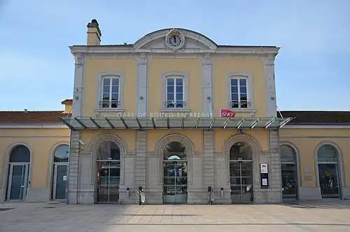 Bourg-en-Bresse station was opened on 1 September 1866. It is the starting point for the du Haut-Bugey line which was opened in 1876. Bourg is the administrative seat of the Ain département. The station is an important junction and consequently sees a lot of traffic. In addition to the Paris - Geneva TGV traffic using the Haut-Bugey line, there is long distance Corail traffic from Strasbourg to Marseille, Strasbourg to Lyon and several TER lines including the line from Bourg to Lyon through the Dombes.