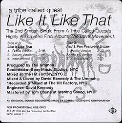 "Like It Like That" is the second single by hip hop group A Tribe Called Quest, from their album The Love Movement. The single was released solely as a promo-copy, had no music video, and received minimal radio airplay.