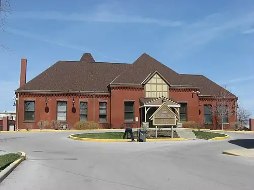 Allen County's first railroad line was built by the Indiana Railroad in 1854 and later subsumed into the Pennsylvania Railroad system.[4]: 335  By the early twentieth century, Lima was a transportation center located at the confluence of five major American railroads: Pennsylvania Railroad; Baltimore & Ohio Railroad (a.k.a. B&O); New York, Chicago & St. Louis Railroad (a.k.a. Nickel Plate Road); Erie Railroad; and Detroit, Toledo & Ironton Railroad (a.k.a. DT&I), [4]: 338  and its economy was highly dependent on the industry-leading, world-famous Lima Locomotive Works.[5]: 2  The Pittsburgh, Fort Wayne and Chicago Railroad, a subsidiary of the Pennsylvania, built a new station in 1887.[3] From 1942 to 1970, the station hosted the Free Serviceman's Canteen, assisting troops in transit during World War II, the Korean War, and the Vietnam War.[6]