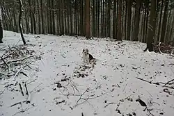 The summit of the Limberg itself is unspectacular, offers no views and no paths lead to it. The summit point is marked in the photograph by the dog