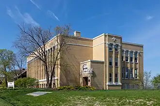 Lincoln School is a historic school building at 728 E. Gorham Street in Madison, Wisconsin. The school was built in 1915 on the site of the Second Ward School, which had been in operation since 1866. Architects Claude and Starck, who designed several other Wisconsin schools along with libraries throughout the Midwest, designed the school in the Prairie School style. The school has a yellow brick exterior with terra cotta banding, multi-story brick pilasters topped with terra cotta capitals separating its windows, and a terra cotta tympanum atop both main entrances. The terra cotta moldings have the same designs as the Merchants National Bank in Winona, Minnesota; its architects, Purcell and Elmslie, were colleagues of Claude and Starck and likely gave them permission to copy the design.[2] The school operated until 1963, when the Madison Art Center moved into the building; the Art Center left in 1980, and it was converted to apartments in 1985.[3]
