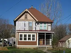 • The Williamson/Rose house at 133 W. Lincoln Street is a 2.5-story frame house with a truncated hip roof built about 1894. The hip roof is varied with gables decorated with bargeboards and the decorative fish-scale shingles that signal Queen Anne style. On the side is a 1-story bay window with a balcony above, sheltered by a small gable. One source says this house was built by J.S. Williamson;[4] others say Oliver O. Rose.[2][8]
