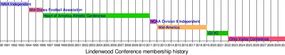 The Lindenwood Lions football team represents Lindenwood University in football. Lindenwood is a member of the Ohio Valley Conference (OVC). The Lions were provisional members of the NCAA Division I FCS for the 2022 season before becoming an active member during the 2023–2024 academic year.[3]