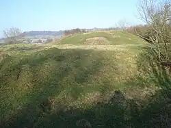 Occupied since at least the Middle Ages; there is evidence of medieval strip lynchets on a hillside near the village.[6] It is mentioned in the Domesday Book of 1086.[7] The village is close to the substantial Mortimer castle at Wigmore and there is evidence of an early motte and bailey castle in the village. It has not been excavated but the former presence of a stone keep has been suggested, as well as a 12th-century gate-house, with a curtain wall around the bailey.[8]