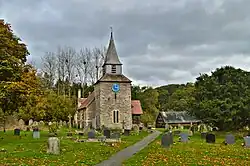 Built of stone,[13] the church dates back to the 13th century when the original was built. The current building was substantially repaired in the 19th century and the bell tower turret has attractive wooden shingles. It was re-dedicated on 22 April 1891 by the Bishop of Hereford.[14]
