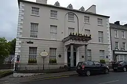 The Lismore House Hotel is a hotel building located in Lismore, County Waterford in Ireland. Formerly known as the Devonshire Arms Hotel, and historically associated with the Duke of Devonshire, it was built in the late 18th century and featured in travel guides since at least the 19th century. It is included on the Record of Protected Structures maintained by Waterford City and County Council.[1] The hotel is in the town centre, overlooking the Ambrose Power Memorial, close to the Lismore Heritage Centre and the entrance to Lismore Millennium Park and castle grounds. Closed in 2016, as of early 2023, the hotel remained closed.