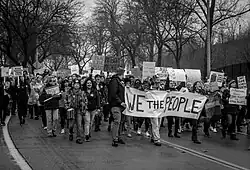 The 2017 Women's March was a network of global political rallies that took place in cities around the world on January 21, 2017. These "sister marches" were both formally and organically related to the popularized 2017 Women's March, all of which happened in concert. The date of this global protest is particularly significant because it was the first day of President Donald J. Trump's term. In addition, the protest was largely in response the positions of the new presidency and the results of the 2016 presidential election. The march was also about promoting women's rights. Other noted causes included, but were not limited to: immigration reform, climate science, and health care reform, countering religious discrimination, violence against women, LGBTQ abuse, addressing racial inequities (e.g. Black Lives Matter), workers' issues, and environmental issues.[1]