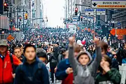 100,000[127] Madison Park – Frank Ogawa Plaza (via western shore of Lake Merritt, from Grand Ave to Broadway).[128] About 100,000 people marched in Oakland, extending 40 city blocks; BART had to add six extra trains to accommodate the throngs of people.[127]