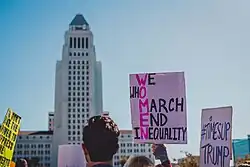 Los Angeles 600,000[90][91] According to Los Angeles Mayor Eric Garcetti, about 600,000 marched in Los Angeles, from Pershing Square to Grand Park and the City Hall on the morning of January 20, calling for equal rights for women in a rally that reflected the rise of the #MeToo and #TimesUp" movements. From 9 a.m. to 4 p.m.,[92] they marched to end violence, and to protect the rights of women, workers, people with disabilities, immigrants, indigenous peoples, and environmental and civil rights.[93]