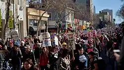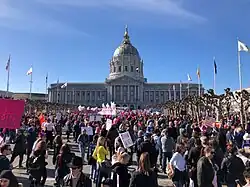 San Francisco 80,000[94] noon rally at the Civic Center Plaza, followed by a march down Market Street to the Embarcadero at 2pm.[110] Speakers included Aimee Allison, president of Democracy in Color; Brittany Packnett, Ferguson, MO activist; San Francisco supervisors Hillary Ronen & Sandra Lee Fewer