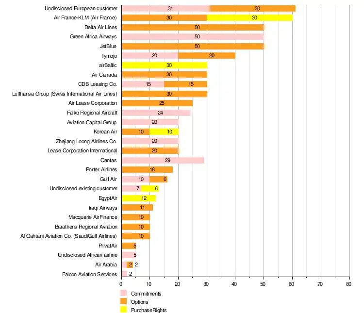 | Air France-KLM | 60 | 45 | 60 | 45 | Ordered for Air France, to replace existing Airbus A318s and Airbus A319s.[69] | ||