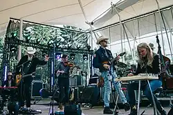 In late 2006, Walt Roberts joined on second fiddle,[53] although less than a year later he had left again.[54] Also in 2007, former pianist Floyd Domino returned to the band.[55] The group collaborated with Willie Nelson on Willie and the Wheel in 2009, and later in the year Dan Walton took over from Domino.[56] In January 2014, McQueen left to raise her children and was replaced by Katie Shore, who also played second fiddle.[57][58] Jason Roberts left a few months later, at which point Shore became the primary fiddler in the group.[59] Around the same time, pianist Emily Gimble (the granddaughter of fiddler Johnny Gimble) and saxophonist/clarinetist Jay Reynolds joined the band.[60]