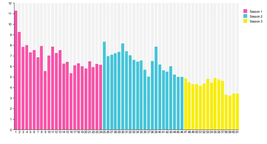 | 3 | 15 | February 14, 2012 | May 29, 2012 | 107 | ||