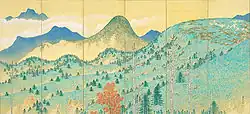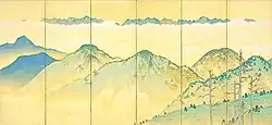 on silk, mounted on a pair of six-panel folding screens[27] 364.2 centimetres (11 ft 11.4 in) by 168.2 centimetres (5 ft 6.2 in) 39°17′32″N 140°32′51″E / 39.2923054°N 140.54753148°E / 39.2923054; 140.54753148 (Akita Museum of Modern Art)