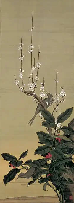 5. ^ 絹本著色松に唐鳥図(佐竹曙山筆) [Exotic bird in a pine, colour on silk, by Satake Shozan] (in Japanese). Akita Prefecture. Archived from the original on 22 October 2013. Retrieved 16 October 2013.